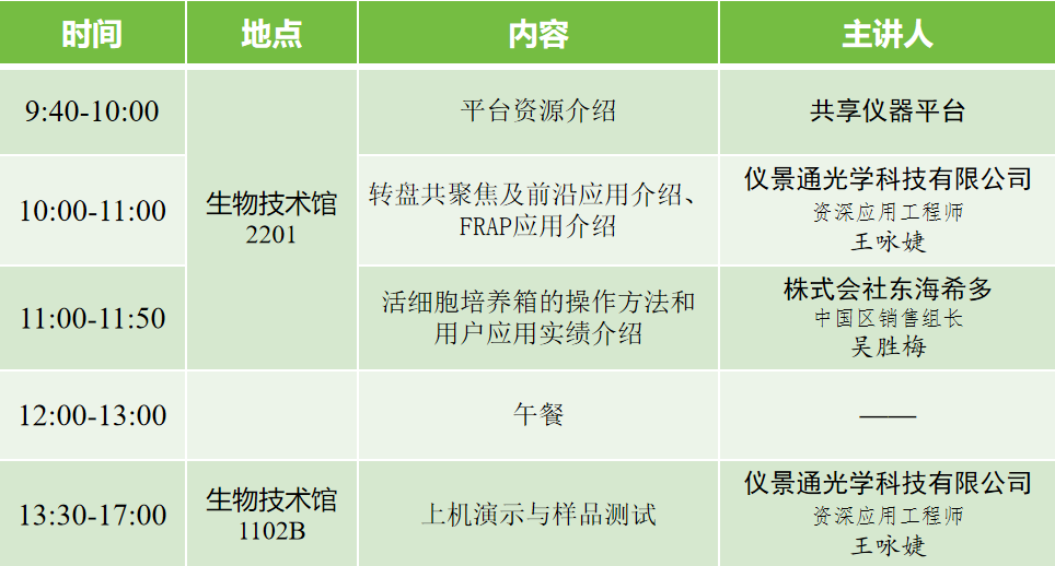 生物医学测试中心共享仪器平台SpinSR 超分辨转盘共聚焦显微镜已开放运行,为了让大家对新设备有更深入的了解,邀请厂家工程师4月17日(周三)9:30-17:00在生物技术馆为大家介绍仪器和指导上机,同时提供免费试用机会,欢迎大家报名参加。