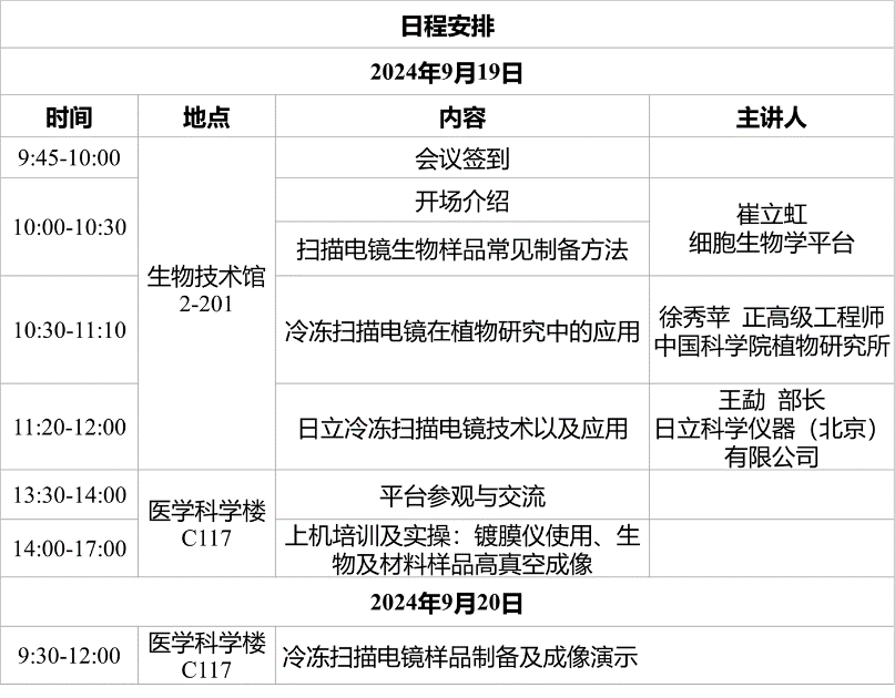 培训内容:以生物扫描电镜样品制备、冷冻扫描电镜技术及应用为主题,并针对讲座内容开展上机实操。