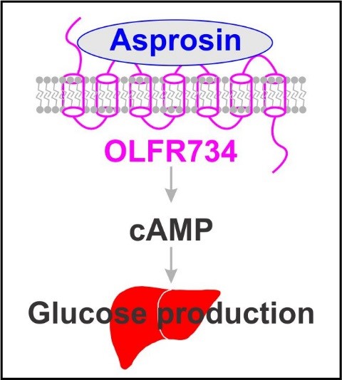 肝脏是糖异生的主要器官。在体内,肝脏糖异生受到体内多重激素水平的调控,如胰岛素和胰高血糖素等。Asprosin是机体在饥饿时白色脂肪组织分泌的一种激素,可以通过结合未知的G蛋白偶联受体(GPCR)促进肝脏糖异生。