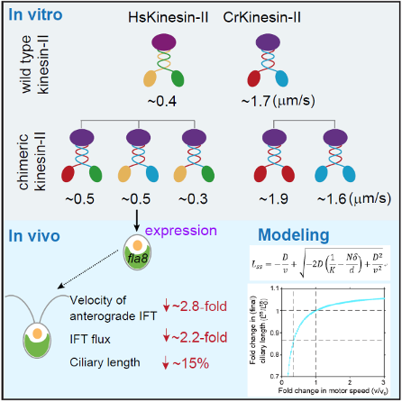 纤毛(亦称鞭毛)是以微管为结构骨架,由纤毛膜包被且突出于细胞表面的细胞器,普遍存在于真核生物中,主要参与细胞运动及各类信号传导过程。纤毛结构和功能的异常会导致一系列的疾病(即纤毛病),例如肾囊肿、视网膜退化、男性不育、多指症、内脏翻转等。 “鞭毛内运输”(IFT)是组装纤毛并维持其长度的关键细胞生物学过程。因此,对IFT过程及其在纤毛长度控制中的作用对基础细胞生物学的探索及相关疾病的机理研究有重大意义。