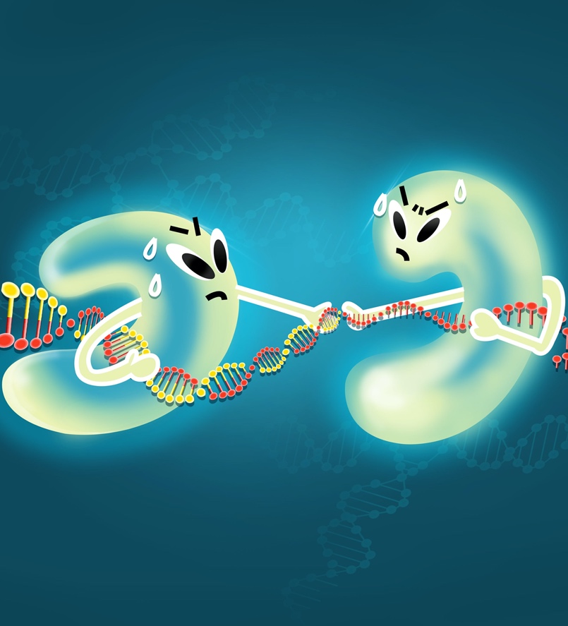图1. Q5 DNA 聚合酶的聚合酶活性(左)和外切酶活性(右)的“拔河”拉锯