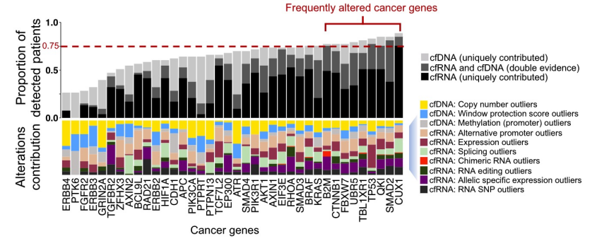 亮点1:在监测肿瘤相关基因方面,cfRNA相较于cfDNA更加灵敏