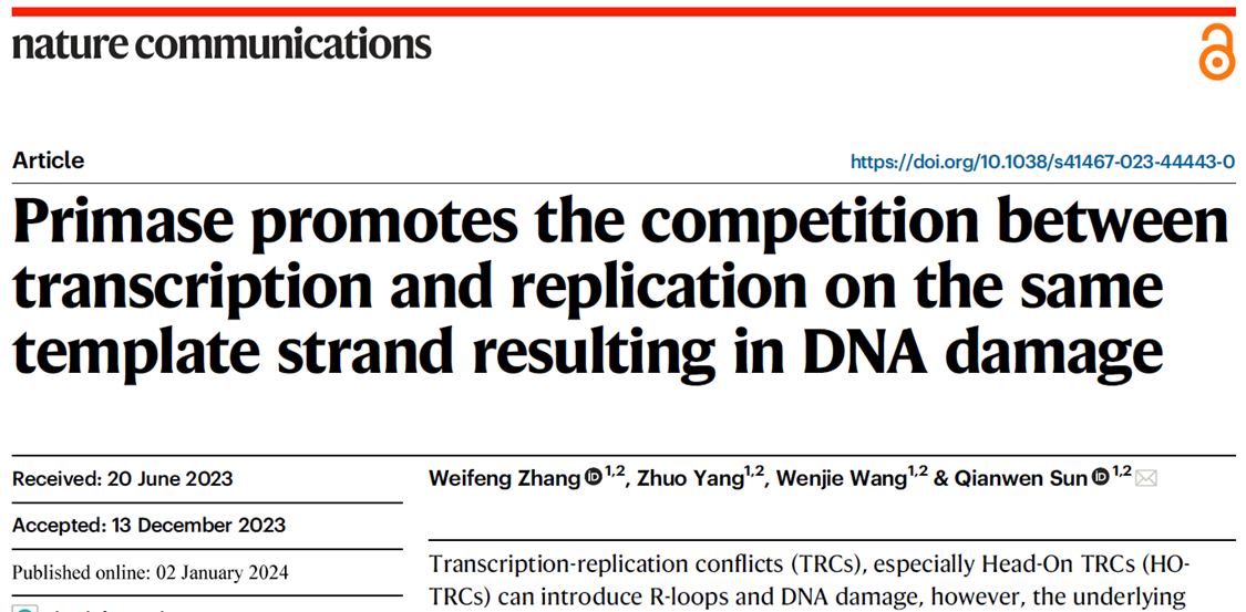 2024年1月2日,best365中国官方网站生命学院孙前文实验室在《自然·通讯》(Nature Communications)杂志上发表了题为“引物酶促进转录和复制在同一模板链上的竞争从而导致DNA损伤” (Primase promotes the competition between transcription and replication on the same template strand resulting in DNA damage)的研究论文。该研究揭示了拟南芥叶绿体DNA复制引物酶促进叶绿体基因组的转录复制竞争和R-loop积累,从而诱发叶绿体基因组断裂的分子机制。