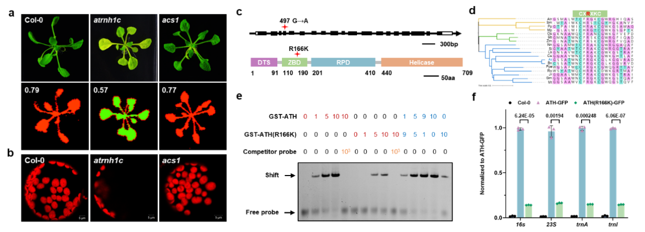 图1 叶绿体引物酶ATH点突变通过减弱其与DNA结合抑制atrnh1c突变体表型