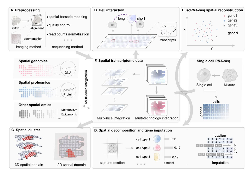 作为近年来快速发展的新兴技术,空间转录组学已经极大地改变了生物和医学多个领域的研究范式。这一技术保留了复杂组织中细胞的空间定位信息,并且以多细胞团、单细胞或亚细胞分辨率进行转录组分析。细胞空间定位信息与其分子特征谱的耦合产生了新型的多模态高通量数据资源,这对高效的数据分析与信息挖掘方法的开发提出了新的挑战。由于生理组织样本的复杂性与技术的局限性,空间转录组数据具有高度的非理想性。其数据结构复杂、信噪比低、稀疏性强且覆盖度不均一,这给数据的深度分析和生物学信息的解析带来了一系列挑战。此外,多个技术路线的空间转录组学正在快速迭代发展,需要现有数据分析理论的发展和创新技术工具的开发,从而充分发挥这一变革性技术的潜力。