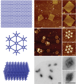图2 季铵化合物辅助的多种复杂DNA纳米结构的组装。比例尺:100纳米。