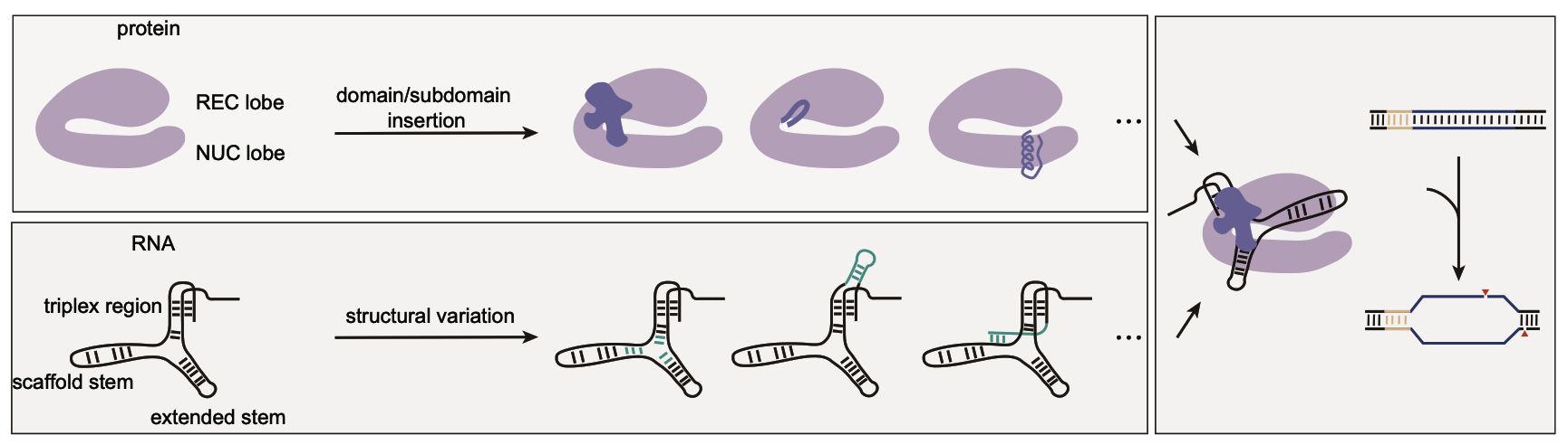 最后,研究从进化的角度描述了Cas12e家族蛋白如何通过获得不同的结构元件,以及相应gRNA的多样性来适应多样化的环境条件,从而提高其切割活性(图3)。这些发现为未来Cas12e系统的优化和基因编辑工具的开发提供了全新思路,也对理解CRISPR-Cas系统的演化机制具有重要意义。