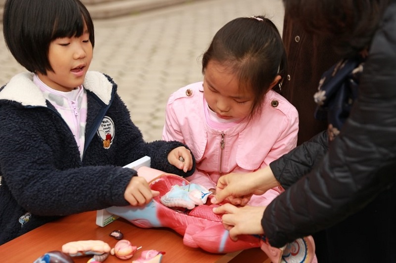 与此同时,面向清华校友子女的探索生命之旅活动和小小生物科学实验师活动正在如火如荼地开展。志愿者们带着小朋友们参观实验室,亲手做实验。从显微镜下看到科学的世界:“洋葱细胞像小房子”、“草履虫游得太快了”……一句句童言稚语,让这场科学之旅分外有趣。