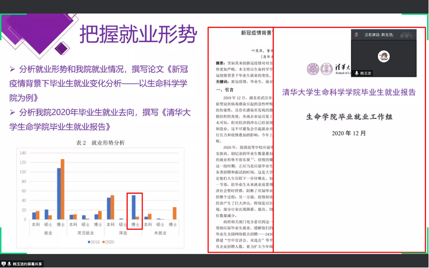 2021年1月2日下午,生命学院研究生工作组2020-2021学年秋季学期助德育理工作述职会在线上举行,院党委副书记谢莉萍、研究生工作组组长叶慧燕、就业工作助理董园,党建工作助理董超凡与各岗位助理到场参会。会议由叶慧燕主持。