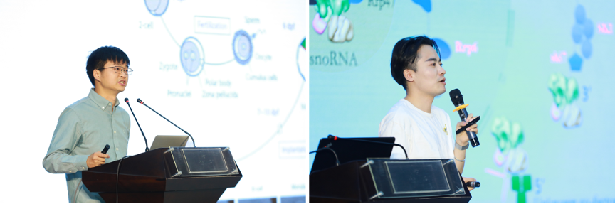 在随后的特邀报告中,两位刚刚结束博士后生涯、建立自己的独立实验室的青年教师周帆、刘俊杰分享了自己的科研经历,给在场的博士后们提供了宝贵的职业发展建议。周帆介绍了自己在单细胞分辨率下追踪胚胎发育过程中的细胞命运决定的精彩工作,并且从细胞与个人的命运选择的相似之处出发,希望大家在科研与生活中都能“跟随内心,用尽全力,顺其自然”。刘俊杰回顾了自己从博士生、博士后到现在独立开展研究的学术生涯,介绍了exosome降解RNA的机制和CRISPR-CasX这种高效的基因编辑工具的鉴定与开发,同时结合自己在科研工作中的感受,勉励大家在科研创新中思路开阔,保持本真。