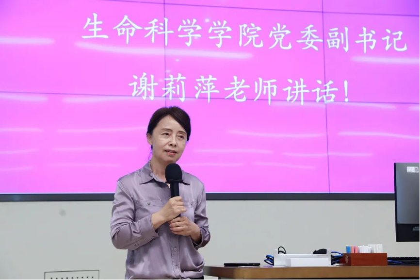 谢莉萍代表学生工作系统对新生的到来表示了欢迎和祝贺。她介绍了研究生工作组的成员组成以及工作内容,未来将从职业规划、思想引领等多方面对学生进行引导、支持与服务。谢老师希望同学们可以多与导师沟通,在接下来的学习和生活中加强体育锻炼,塑造良好的身体素质。