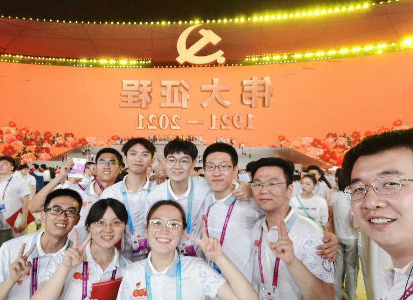 除了业务专,更要思想红。他积极向党组织靠拢,成为九字班第一批党员发展对象。2021年,恰逢中国共产党成立一百周年之际,身为一名预备党员,他毅然报名了这次专项活动,经过数次培训和彩排,顺利完成了中国共产党成立一百周年大型情景史诗《伟大征程》现场志愿者的工作任务。