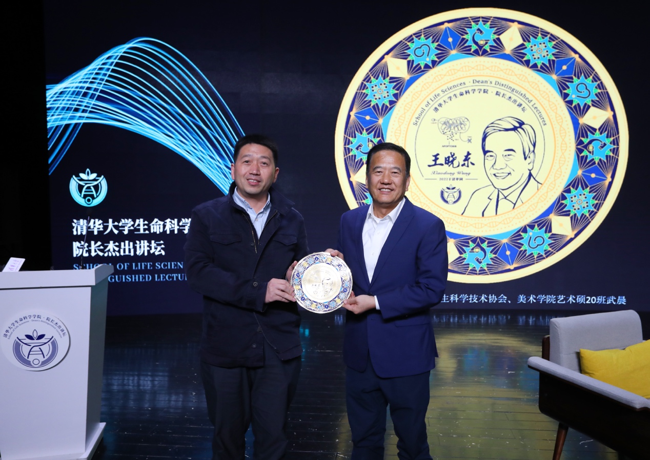 时松海院长代表生命学院向王晓东博士赠送纪念品