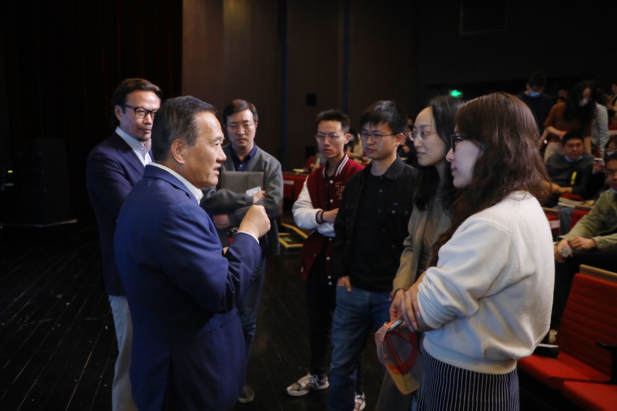 座谈交流环节,王晓东用风趣幽默、深入浅出的语言讲解了包括生物化学、细胞生物学、肿瘤学、结构生物学、药物化学等在内的多学科知识,介绍了在科研转化方面的经验,也分享了他多年来从事科研工作的感悟,师生踊跃提问,现场氛围热烈。最后,时松海代表学院向王晓东赠送了由生命学院本科生和美术学院学生联合设计制作的纪念品。