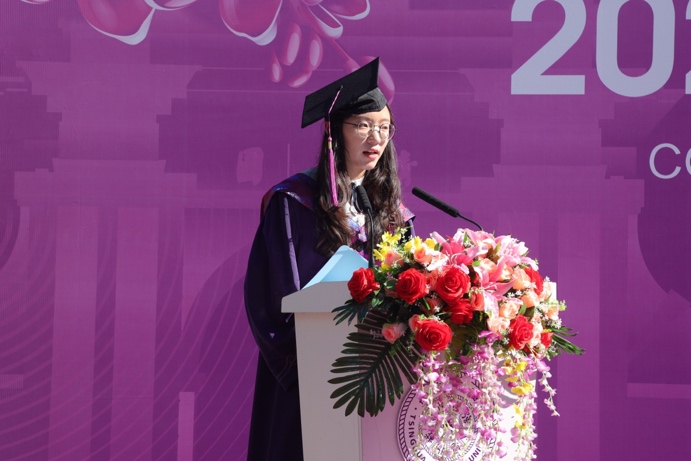 生82班的林希颖和博士研究生兰君分别作为本科生和研究生代表发言,他们回顾了在生命学院求学经历的成长和感悟,表示未来无论身处何地都将继续发扬清华敢于拼搏、敢于担当的精神,在祖国最需要的地方发光发热。