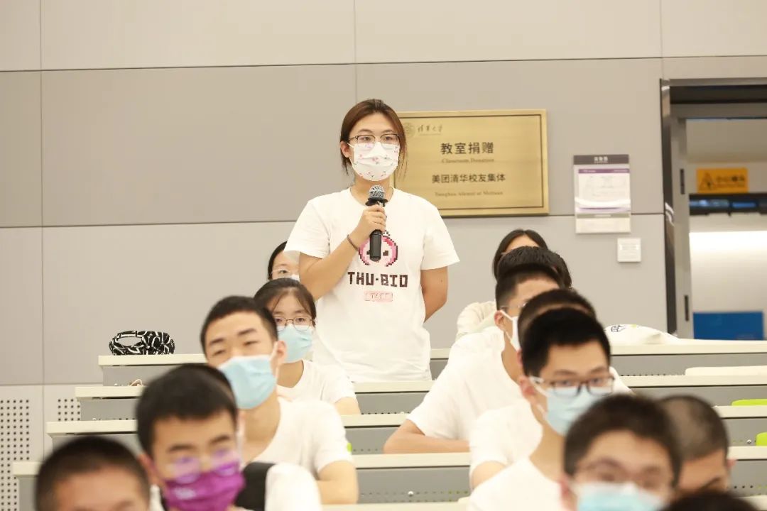 时松海首先向二字班的同学们表示欢迎和祝贺,他分享了自己年轻时的求学经历,强调了本科期间培养独立能力的重要性。接着,他向新生介绍了学校创立和发展的历史,解读了“清华”这所百年学府所承载的“自强不息 厚德载物”精神,并着重介绍了生物系的重建与发展历程。结合暑期工作会议精神和当前生命学院的学科布局、师资队伍与人才培养理念,他鼓励同学们积极与老师们交流,尽早地了解科研、了解学科发展。