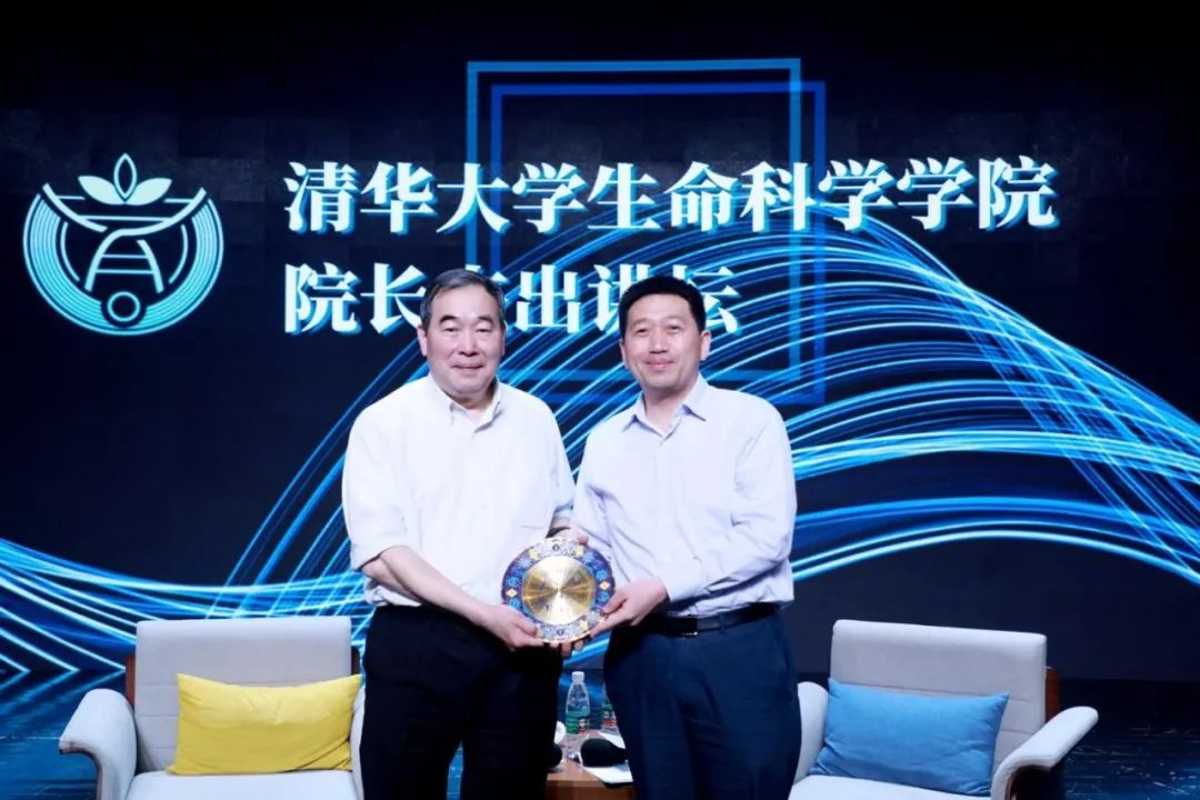 时松海院长代表生命学院向蒲慕明先生赠送纪念品