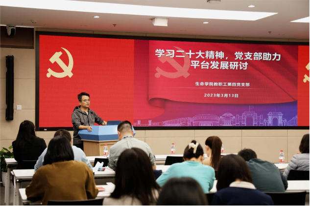 3月13日,生命学院教职工第四党支部“学习二十大精神,党支部助力平台发展”研讨会在生物医学馆E109举行。研讨会围绕当前生命平台的工作模式如何适应高质量发展要求、如何在做好测试服务的同时进行技术创新和构建科研共同体等议题展开深入探讨。生命学院党委委员、蛋白质研究技术中心常务副主任王新泉出席会议,教职工第四支部共40余人参加研讨会,会议由党支部书记王文娟主持。