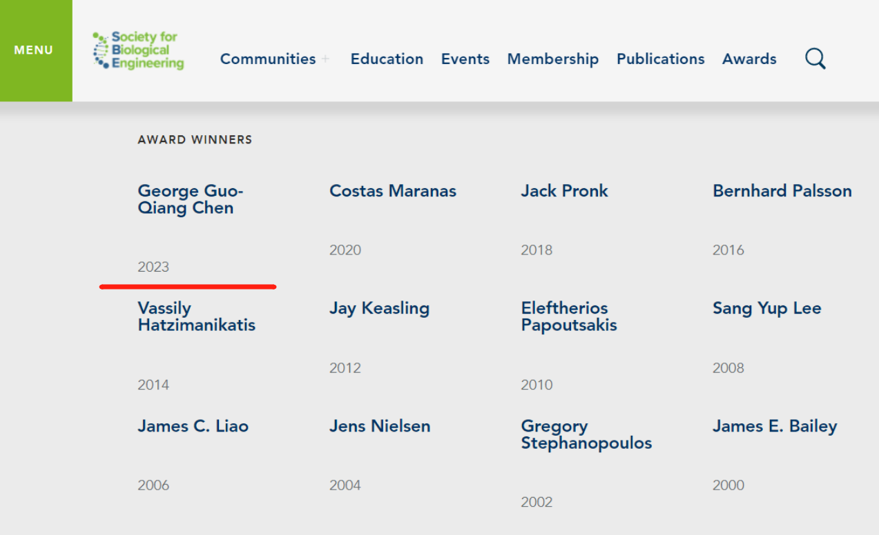 自2000年国际代谢工程奖正式颁发至今,陈国强教授成为了首位获得该奖项的中国科学家。此前获得该奖项的科学家包括生物化学工程先驱James E.Bailey、合成生物学领域权威Jay Keasling,以及多位美国工程院院士。