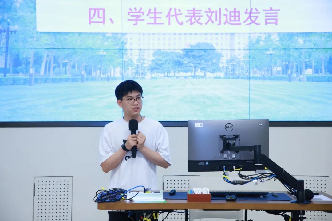 生命学院学生会主席刘迪作为高年级学生代表发言。他结合自己的亲身经历向学弟、学妹们分享了未来大学生活中的各种可能,鼓励学弟学妹们积极尝试、勇敢探索、主动融入,在清华园找到适合自己的发展平台和属于自己的成长道路,既要仰望星空,也不忘脚踏实地,为自己的青春留下无悔的一笔。