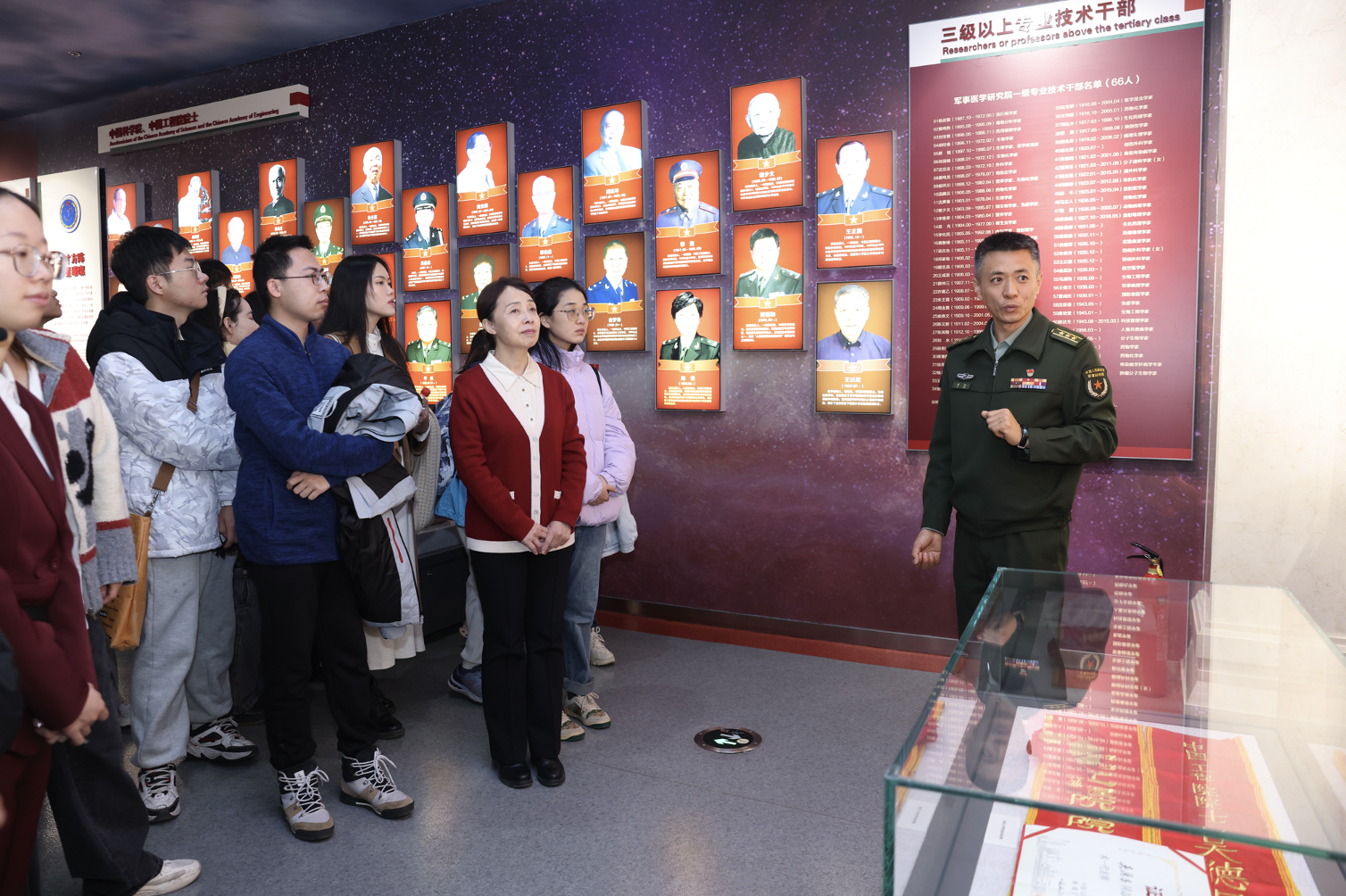 本次实践活动中,师生先是参观了军事医学博物馆、研究院院史馆和张学敏、陈薇、李松三位院士团队的实验科研平台。支队成员们了解到军事医学研究院于1951年8月成立,2017年9月转隶军事科学院,主要承担了军事医学领域基础理论和技术研究任务,为我国军事医学和卫生事业做出了积极贡献。
