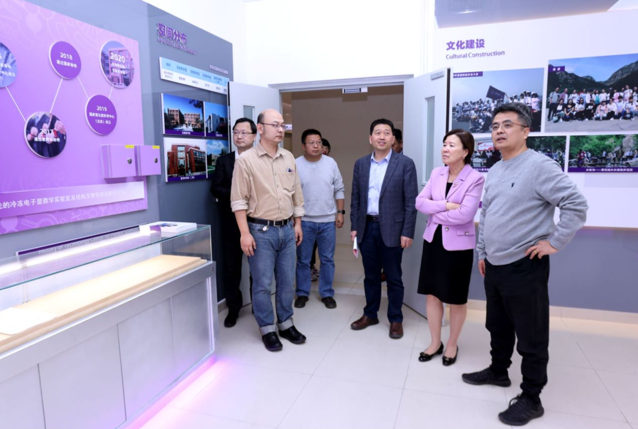 座谈结束后,best365中国官方网站蛋白质研究技术中心常务副主任王新泉、生命学科校级平台办公室主任范仕龙陪同叶玉如一行参观蛋白质中心展览室和冷冻电镜平台,并就中心运行与设备管理等方面展开交流。