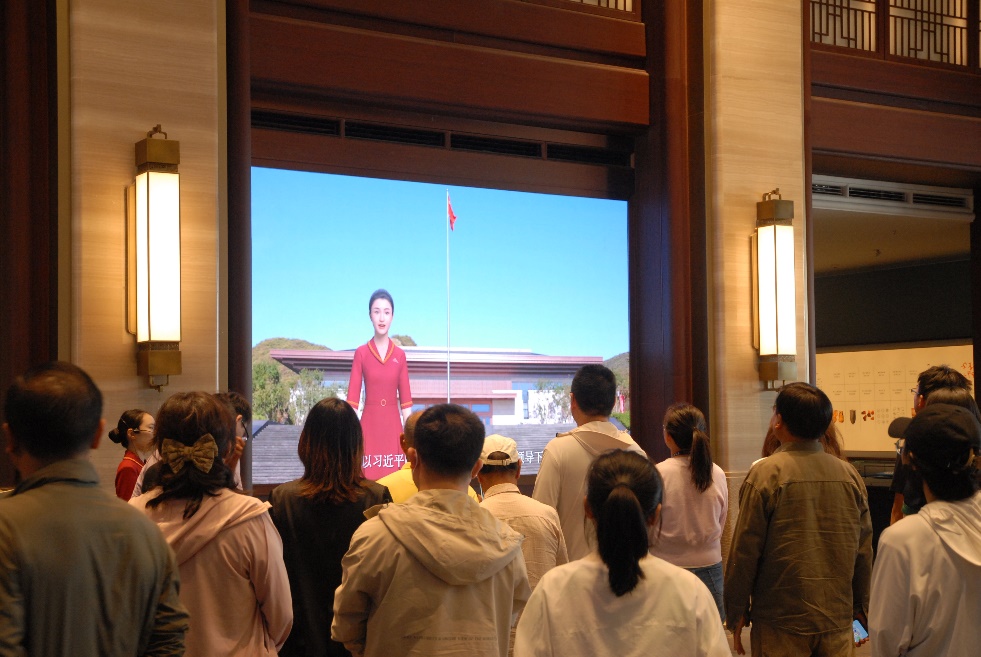 接着,数字讲解员为大家介绍了中央总馆(文翰阁)的概况。中央总馆展览体系以中国历史发展与中华文明演进为主线,打造了“1+2+3”格局,包含1个主题展览、2个基本陈列、3个专题展览;设置国家书房和文瀚厅2个精品陈列,北区地下一层和洞库5个特色库展,构建融合图书馆、博物馆、美术馆、档案馆等多种场馆功能形态于一体的国家版本馆特色展陈体系。入藏各类版本2500余万册/件,保藏了包括新中国成立以来各类出版物版本以及中华古籍、雕版拓片、碑帖家谱、钱币邮票、数字版本等承载中华文明印记的各类资源。