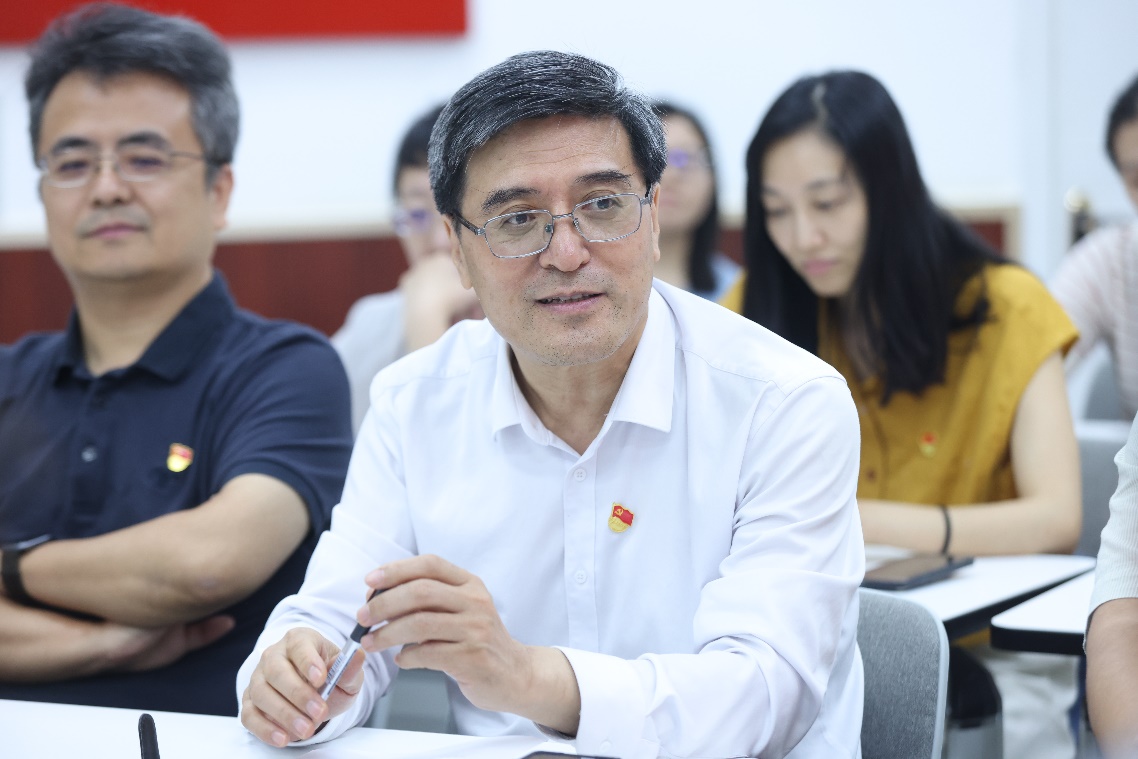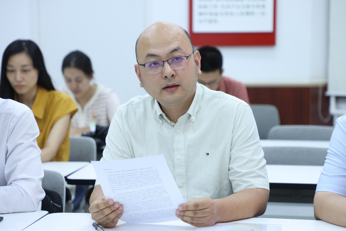 党委副书记王佳伟、长聘副教授龚海鹏作为入党介绍人,分别介绍了梁鑫的培养情况和综合表现。支部其他党员同志也对梁鑫的发展提出了意见和建议,希望他今后在全院师生中更好发挥榜样作用。经支部成员充分讨论并投票表决,同意接收梁鑫为中共预备党员。