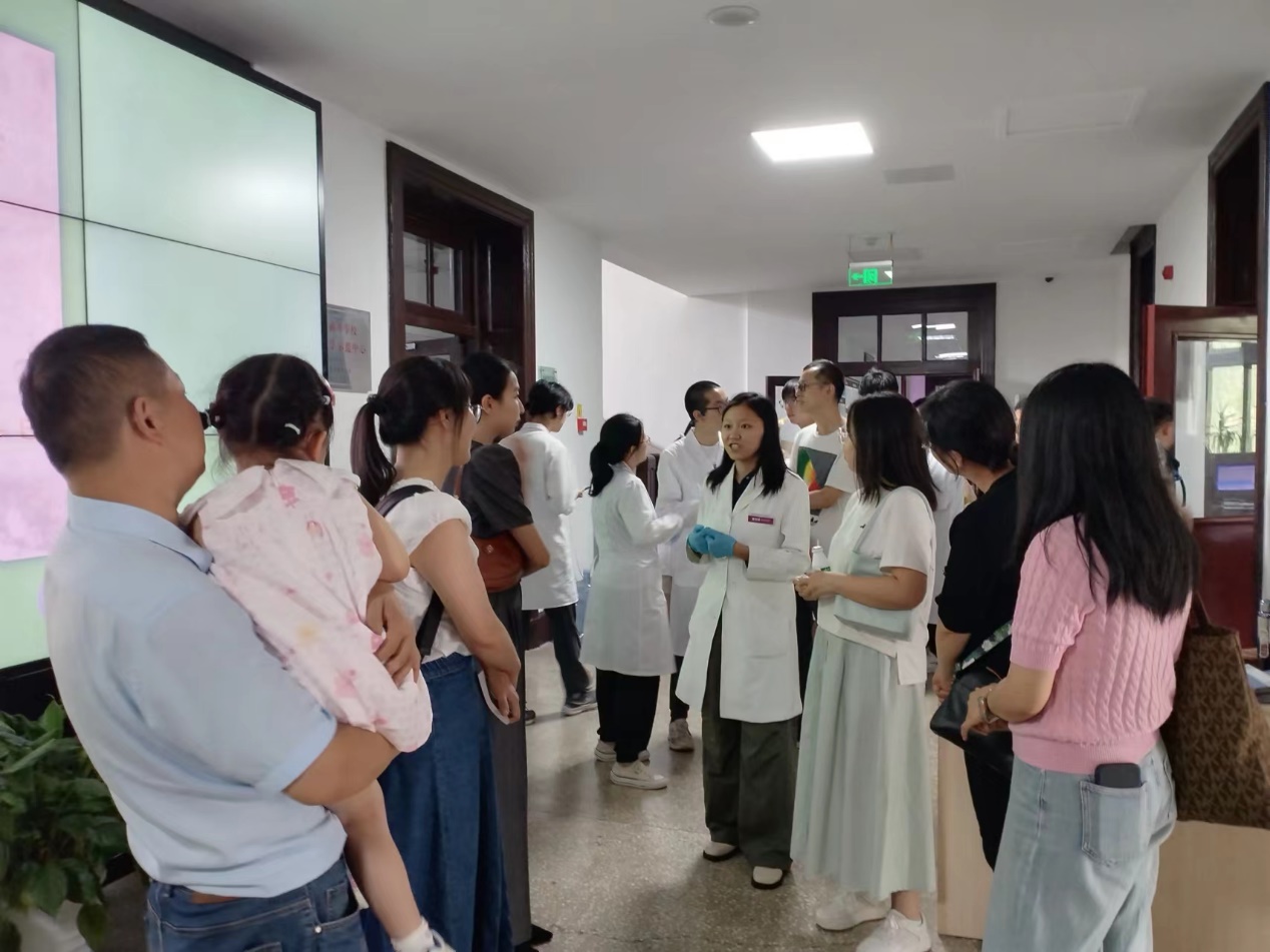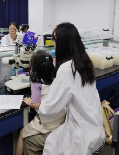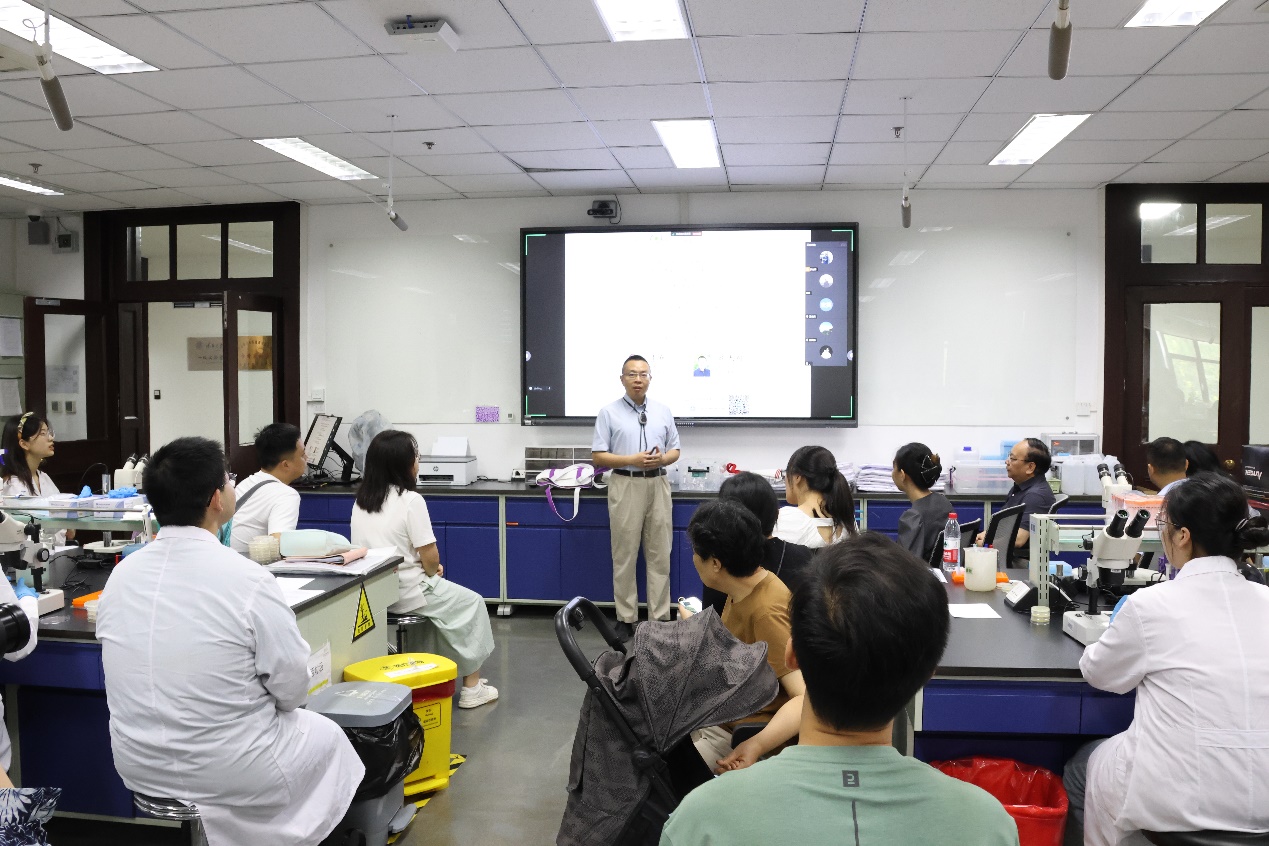 活动中,主讲教师欧光朔教授首先介绍了KAND疾病的致病机理和研究现状,报告了非瑟酮作为KIF1A-R11Q特异性激动剂的发现过程及受到的启发。李巍教授针对现场和线上听众提出的各类KAND临床问题进行了专业的解答。随后,KAND患者和家属及参观交流人员观摩了学生们正在进行的KAND模式动物抑制子筛选实验,并在茶歇期间与同学们讨论互动。