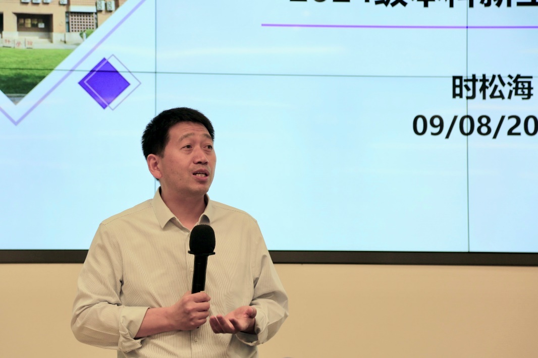 最后,时松海祝贺同学们正式开启本科的学习生活,并强调了开学的注意事项,报告在同学们对美好大学生活的期待中结束。
