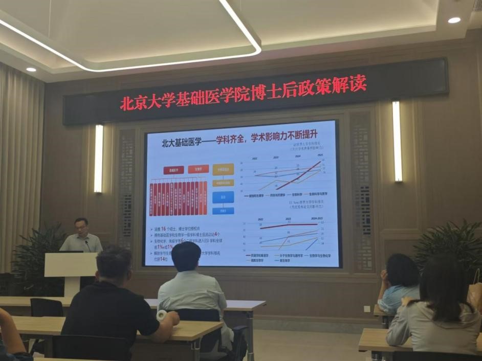 活动最后环节,北京大学基础医学院姚明解为支队成员详细解读了北京大学基础医学院博士后政策,介绍了博士后项目的申请流程、选拔机制、在站培养体系、支持政策及合作导师资源,使在场学生明晰了未来在北大进行博士后研究的成长路径。