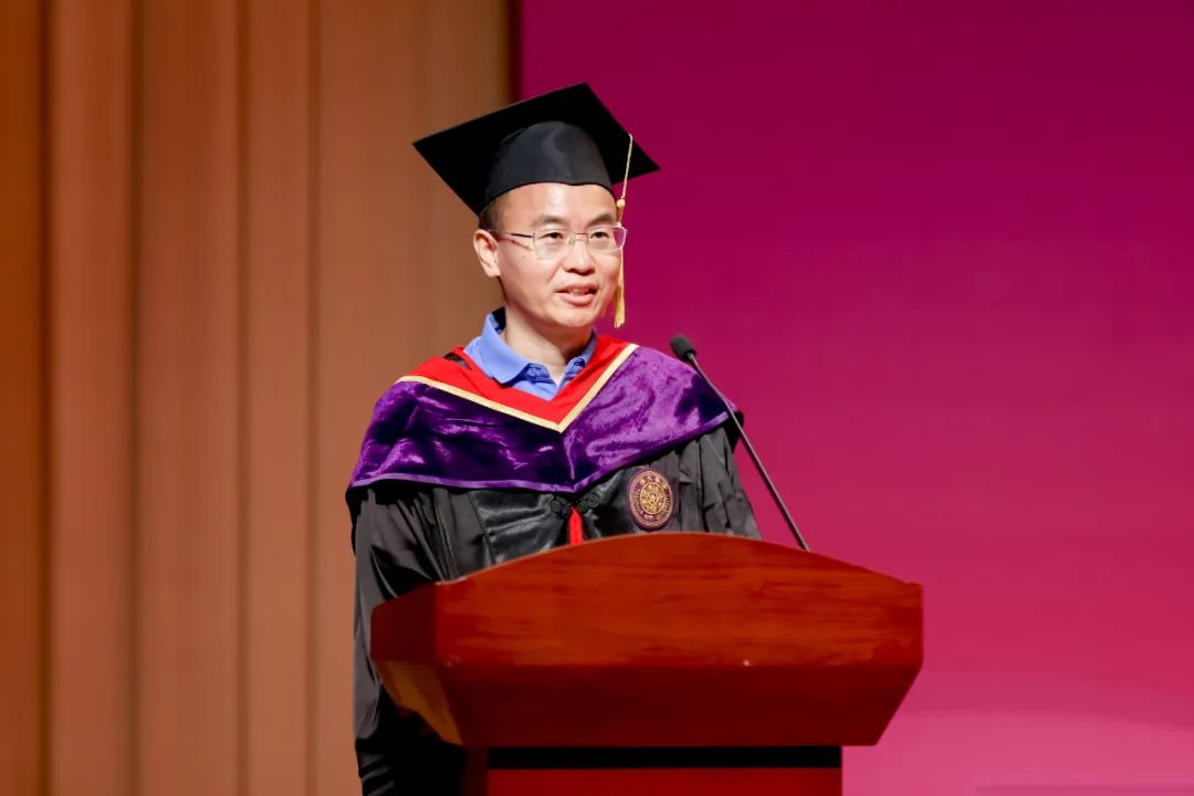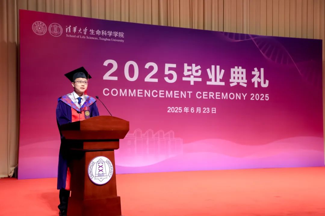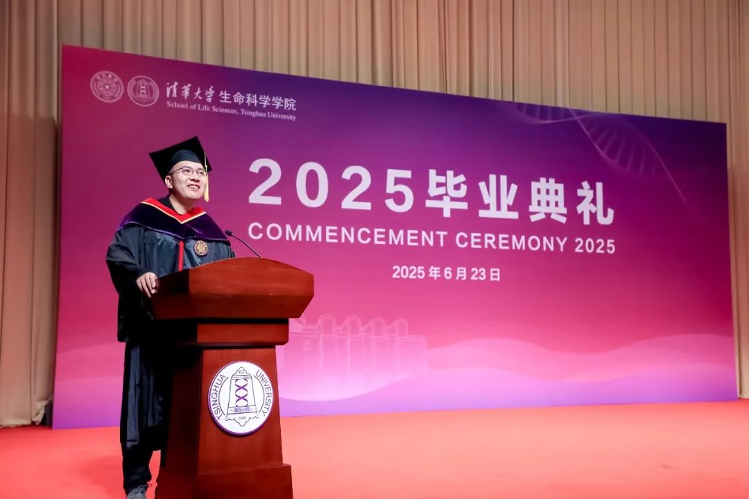 教师代表王一国讲述了自己的科研故事,并结合新激素发现的研究方向,生动地将人生选择与发展隐喻为细胞、代谢调控过程,希望毕业生携带清华“代谢特征”的信使,去“转染”世界的每一个角落,成为真正的“功能蛋白”,延展无限人生可能,做知行合一的探索者。
