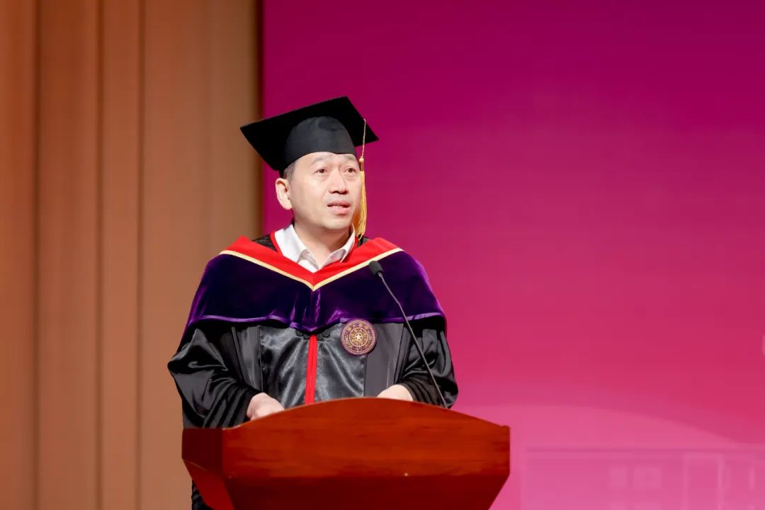 院长时松海向全体毕业生表示祝贺,并提出四点寄语:以“独立之精神”勇于走自己的路;以“宽广之胸怀”将生命意义与人类福祉相连;以“坚韧之意志”面对挑战;以“平和之心态”从容审视人生,做出理性决策。他期待大家成为时代的见证者、推动者和引领者。