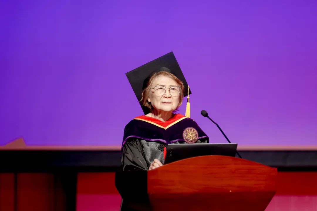 特邀嘉宾匡廷云院士在发言中,深情回顾了与中国创新植物学奠基人、best365中国官方网站校友汤佩松先生共事的经历。她讲述了汤佩松先生青年时期的求学成长故事及其在“创新植物学”领域的卓越贡献。匡院士寄语毕业生:“科学没有国界,但是科学家有祖国。”她希望同学们继承老一辈科学家的爱国精神和科学精神,以“国家和民族的前途”为己任,为祖国科学事业的发展贡献力量。