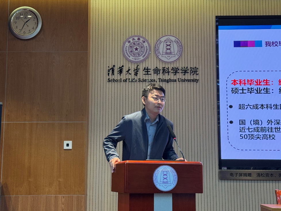 李鹏随后作就业动员讲话。他深入分析了当前生物学专业研究生所面临的就业形势及其深层原因,指出虽处行业变革时期,但生物医药领域整体向好的趋势未变,鼓励大家保持信心。他强调,个人职业选择应与国家战略和社会需求同频共振,号召同学们奔赴祖国需要的一线岗位实现青春价值。结合亲身经历,他还对同学们进行了针对性的心理调适与职业发展规划辅导,提醒大家在毕业前的关键阶段端正态度、明确定位,高效平衡学业与求职,审慎做出决策。最后,他预祝所有毕业生都能开启理想的职业生涯。