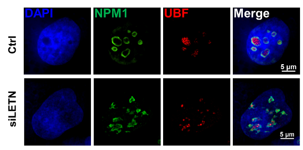 Knock-down of LETN largely disrupted the nucleolar NPM1 distribution patterns