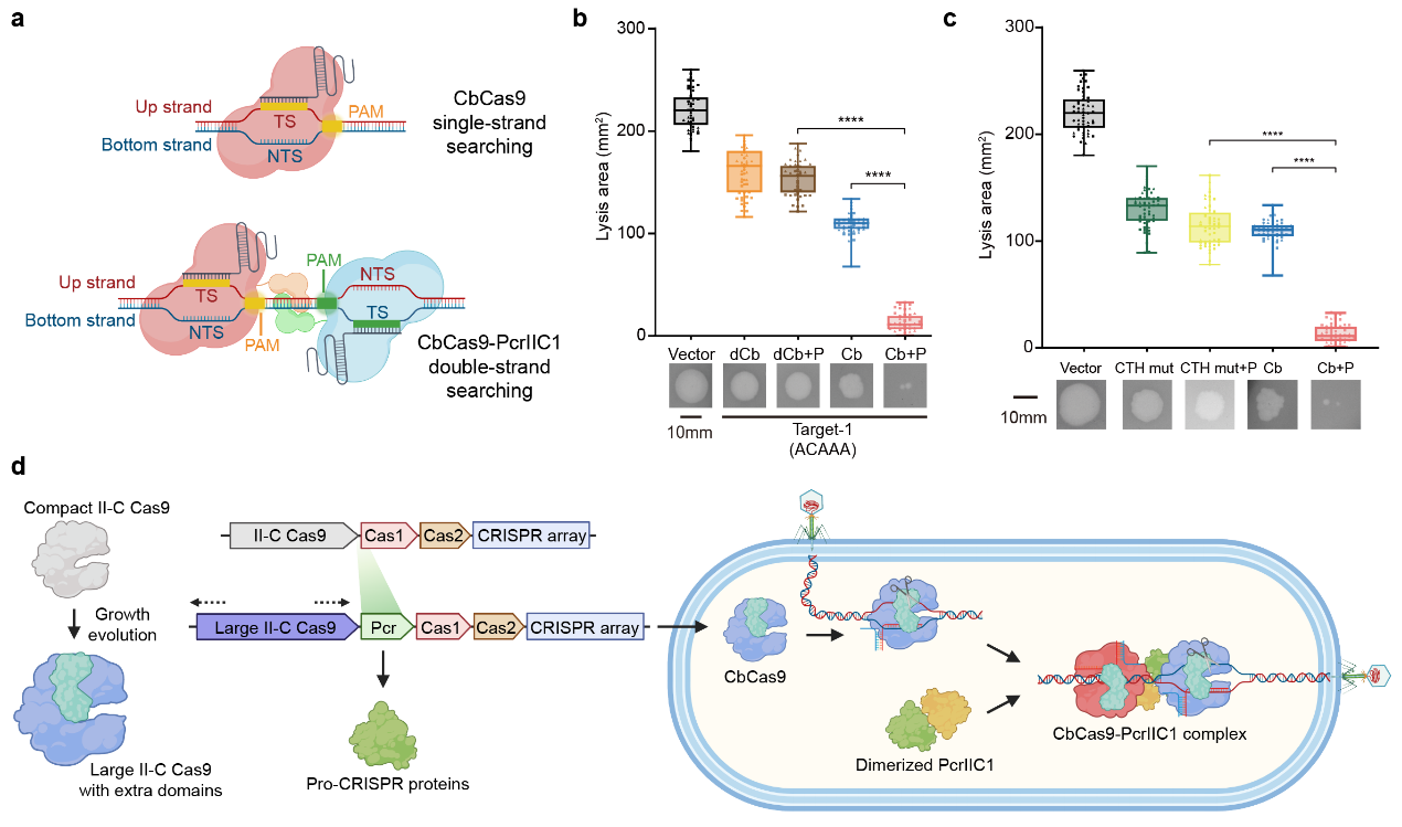 To validate the impact of PcrIIC1 on the anti-phage immunity of the CbCas9 system, the research teams performed the phage plaque assay in E. coli. The results showed that PcrIIC1 significantly enhances the phage resistance of the CbCas9 system. Disrupting the interaction between CbCas9 and PcrIIC1 led to the loss of enhanced immunity, indicating the critical role of the CbCas9-PcrIIC1 complex in boosting the CRISPR-Cas system's immune function.
